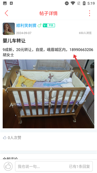 在帖子详情页面里,查看【婴儿车转让】的具体信息,像成色、价格、联系方式这类内容都要了解清楚,这样才能掌握详情。