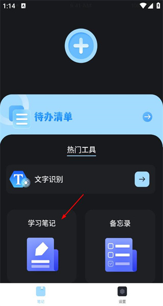 打开软件主界面后,找到“学习笔记”这一选项,点击它就能进入笔记分类的选择页面。