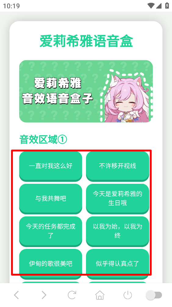 爱莉希雅语音盒是网友自发制作的语音播放工具,内含角色爱莉希雅的全套语音内容。它不仅体积轻便,操作也十分便捷,只需点击就能播放各类语音片段,还具备悬浮窗、延时播放、自动播放等实用功能,让用户可以随时沉浸在喜爱的语音中。