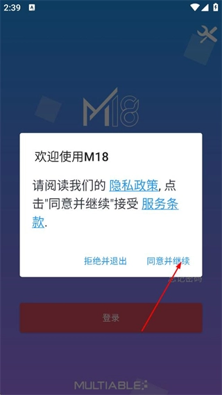 1、阅读隐私政策和服务条款后,点击同意并继续,进入登录页面。