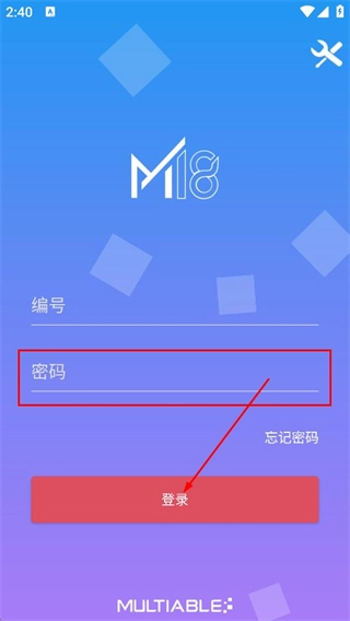2、在M18登录页面,填写编号对应的内容,即可进行下一步的操作。
