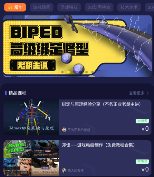cgjoy课堂涵盖了丰富的游戏美术相关课程,包括游戏特效、游戏动画、游戏模型、游戏原画等多个领域,能够满足不同学习者的需求。这些课程均由行业内的专业人士授课,学习者可以根据自身情况随时在线学习,从而丰富职业技能知识,提升职业技能水平。对于职业规划是成为游戏美术设计师的人来说,这款软件无疑能提供很大的帮助。