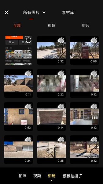 在爬爬资源里下载安装快影视频剪辑应用,启动软件后,点击“开始剪辑”选项,接着勾选素材并按照顺序导入录制好的视频文件。