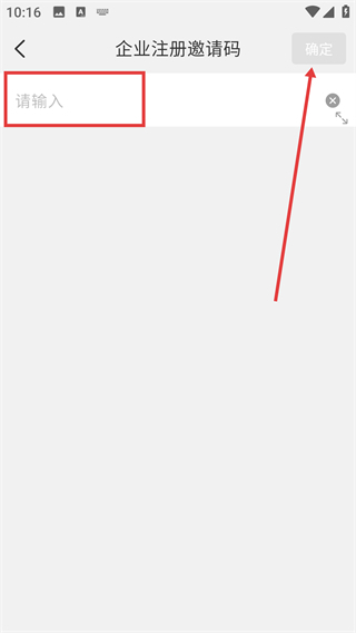 在【企业注册邀请码】页面的输入框中填写邀请码,填写完成后点击页面右上角的【确定】按钮,就能提交邀请码相关信息。