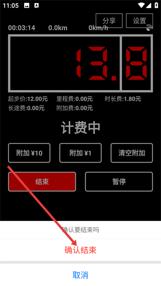 在弹出的“确认要结束吗”提示框中,点击【确认结束】按钮,即可完成本次计费流程的收尾工作。
