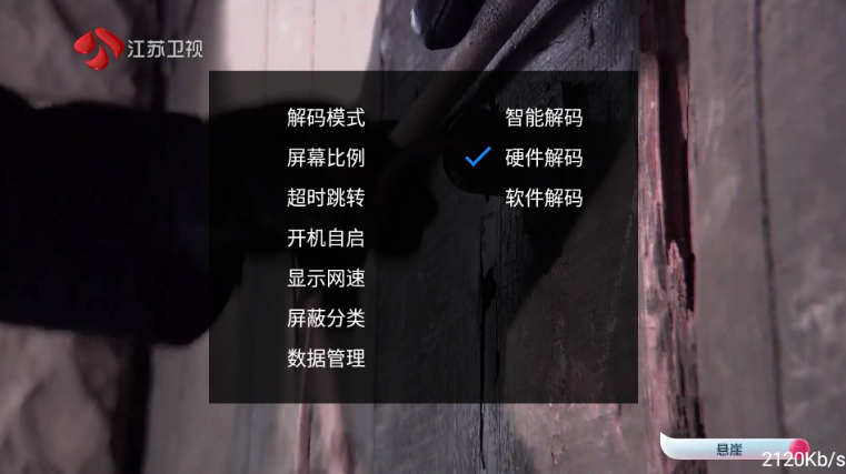 3、在屏幕上按住并停留数秒,会弹出解码模式、屏幕比例等相关设置选项。