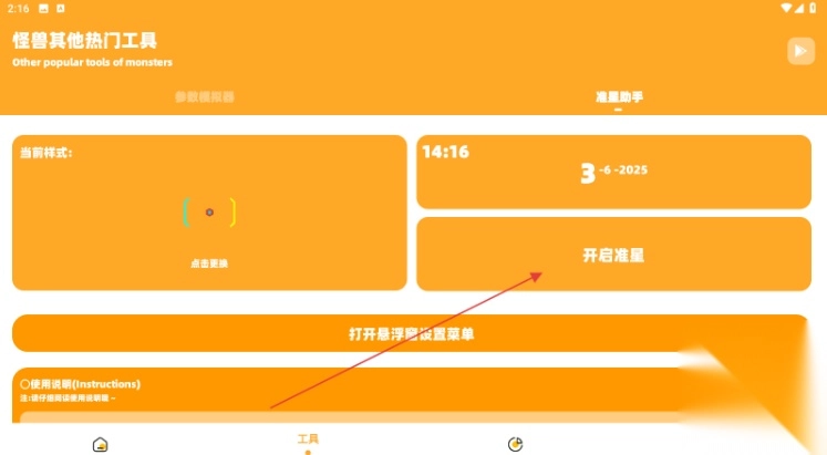 3、切换至【怪兽其他热门工具】界面,点击【开启准星】。
