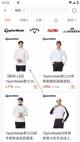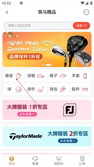 2、进入商城后,选择【服装】分类,可查看高尔夫服装系列。