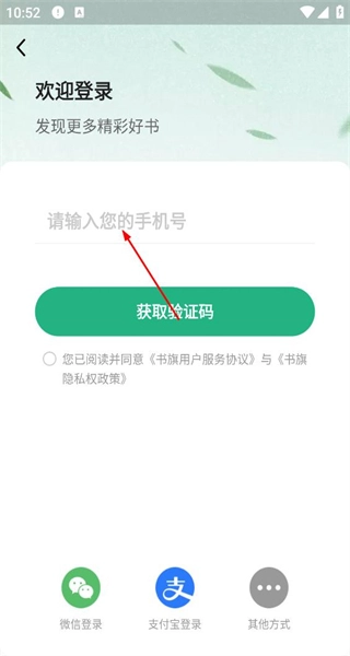 进入登录界面后,找到手机号输入框,填写手机号,点击获取验证码,继续登录流程。