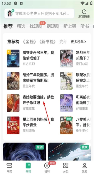 登录完成后,回到推荐页面,就能浏览各类榜单上的书籍,挑选自己感兴趣的内容来阅读。
