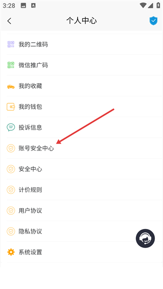 进入【个人中心】后,找到并点击【安全中心】选项,就能进入账号安全相关的设置页面。