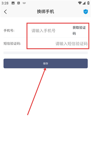 进入【换绑手机】页面后,首先输入新的手机号码,接着点击【获取验证码】按钮,待收到验证码并填写完毕,最后点击【保存】按钮,即可完成手机换绑操作。