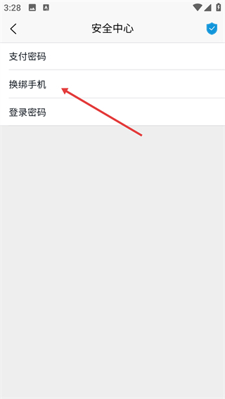 在【安全中心】页面,选择【换绑手机】选项,即可进入手机号码更换的操作界面。