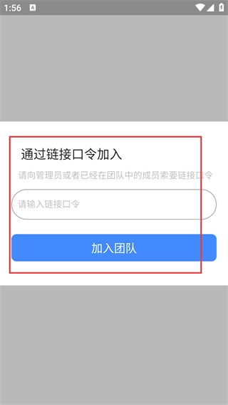 在“通过链接口令加入”页面,先向团队管理员或成员获取链接口令,将其输入到对应的输入框中,再点击【加入团队】按钮,即可完成团队加入的操作。