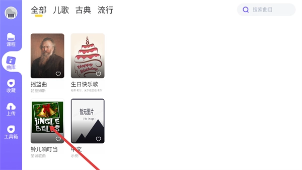 在曲库中挑选想要练习的曲目,比如《铃儿响叮当》,点击该曲目对应的选项就能进入练习界面。