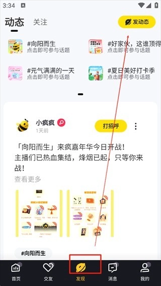 随后在发现板块点击发动态