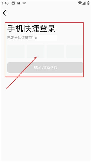 验证码发送后,请在「手机快捷登录」的输入框中填写收到的验证码,同时留意「55秒后重新获取」的倒计时提示。
