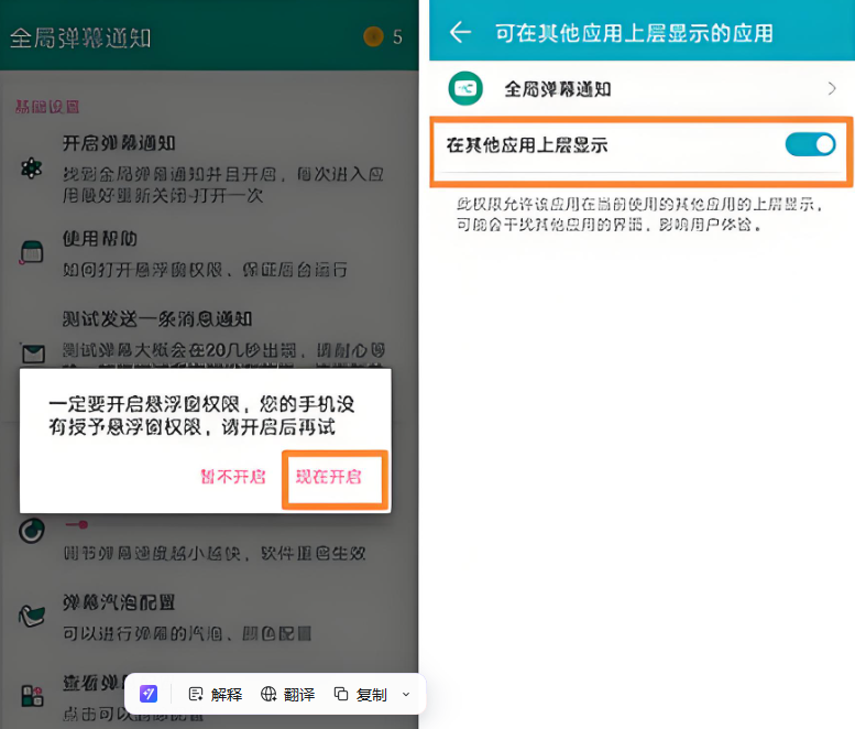要在本站开启全局弹幕通知,需获取悬浮窗权限,请前往应用管理界面,为该应用授予悬浮窗权限。
