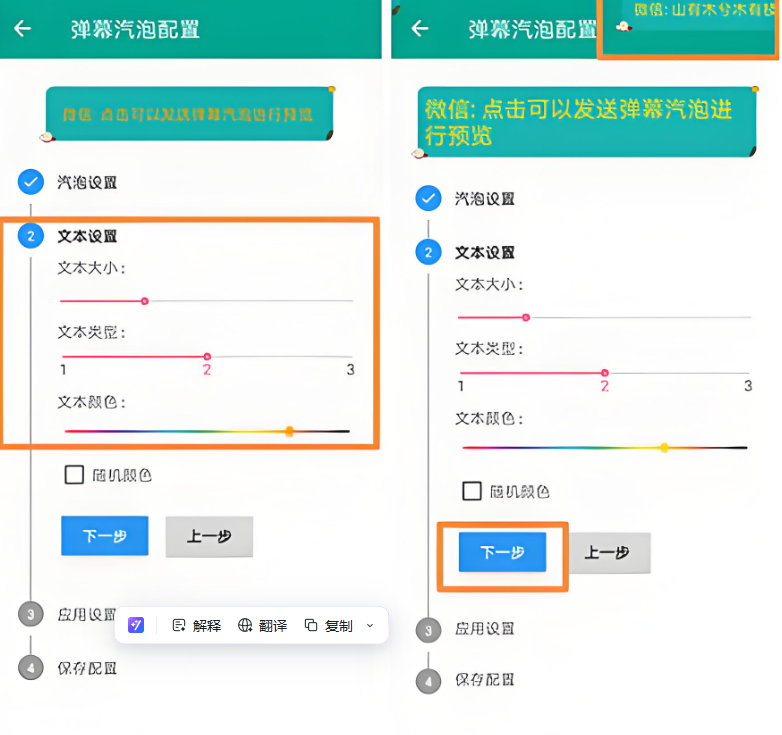 还可设置:弹幕气泡配置,选择“气泡模式”;