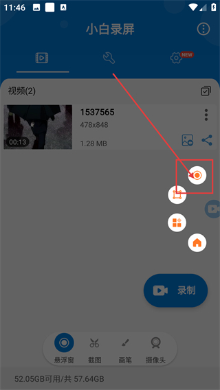 点击录制后,界面会弹出控制浮窗,点击浮窗中的录制按钮,就能正式开始屏幕录制的流程哦。