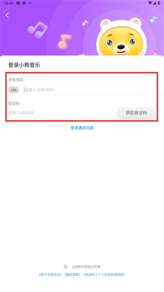 在登录页面,输入【手机号码】,点击【获取验证码】,输入验证码后完成登录,即可进入应用的主功能界面。