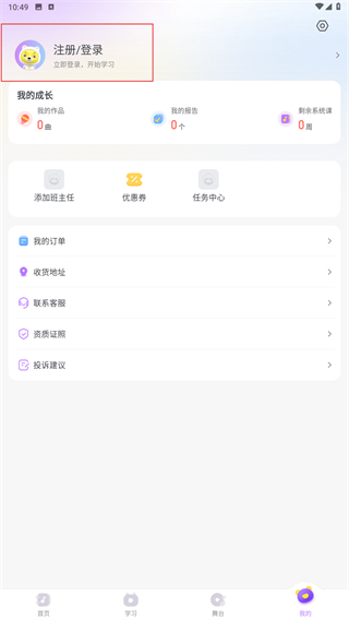 进入【我的】页面,点击【注册/登录】区域,启动登录流程来解锁更多功能权限。
