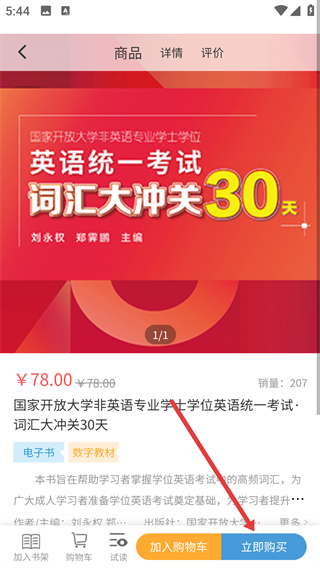 在【考试培训】分类下,浏览目标书籍(如【国家开放大学非英语专业学…】),查看其价格、销量等信息。