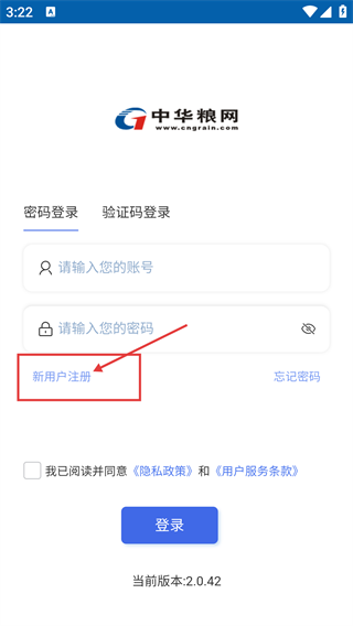 进入登录页面后,可选择【新用户注册】选项;此页面提供密码登录和验证码登录两种账号登录方式。
