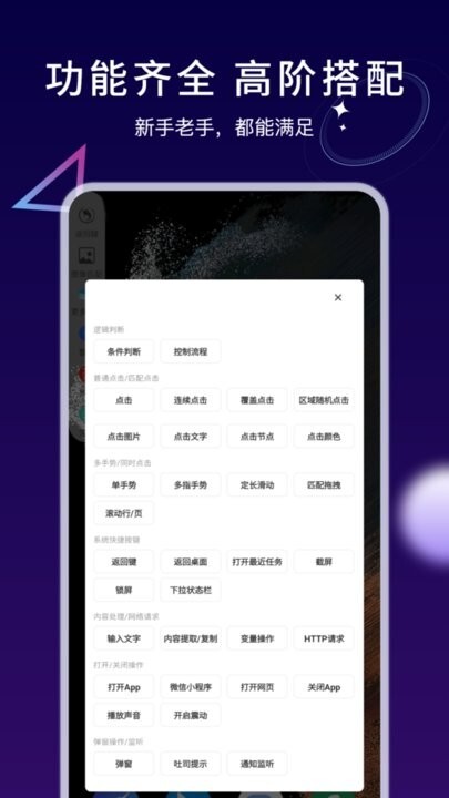 具备强大的链接功能,能够支持自动点击、滑屏等各类操作。