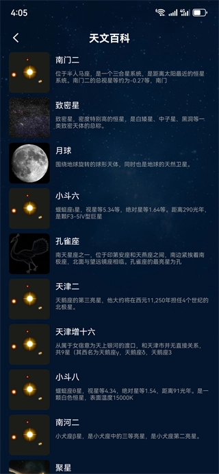 1、收录了完整的星官、星宿信息与详细数据,用户既能通过转动设备,也能通过滑动屏幕来旋转查看星空,实时了解星星的精确位置,轻松定位到目标星体。