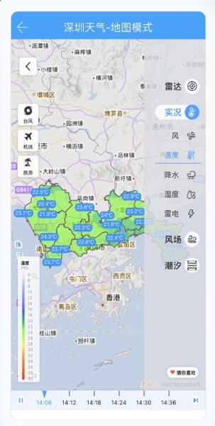 根据自身需求点击查看深圳各区域的天气预报,及时了解天气预警等各类详细信息。