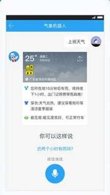 你也可以点击气象小机器人,按住麦克风说出你想了解的内容,就能查看对应的回复了。