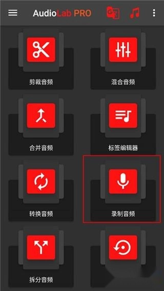 打开本站提供的Audiolab中文版,进入软件的首页界面后,选择“录制音频”功能选项。