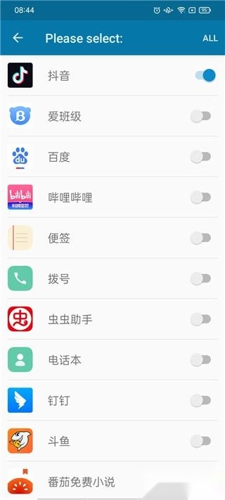 进入软件后,点击“Select”选项,选择你想添加到灵动岛的应用;若需一键全选,点击右上角的“ALL”按钮即可。