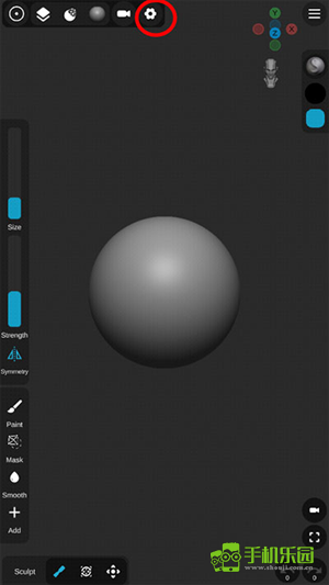 首先启动Sculpt+软件的最新版本,接着点击界面上方的齿轮形状设置图标。