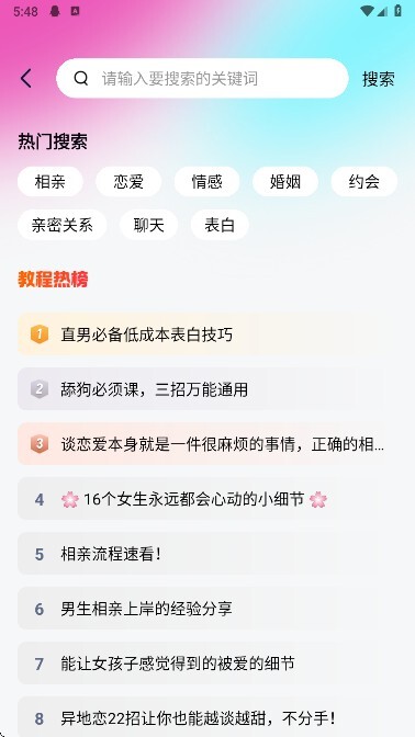 可借助搜索功能快速定位恋爱课程,方便迅速找到并即刻在线学习,助力提升恋爱能力。