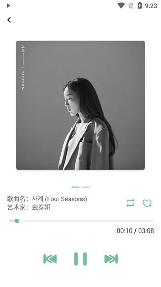 而且音乐播放界面十分简洁,支持收藏音乐,还能对播放方式进行设置;