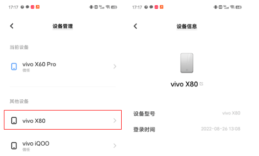 你可以在手机的“设置”里找到“vivo帐号”,进入后选择“设备管理”,就能查看该帐号登录过的设备信息了。