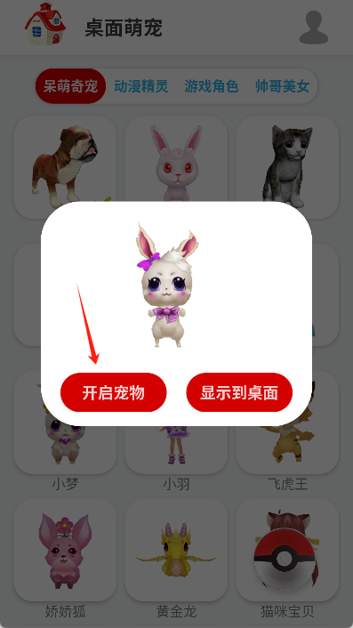 点击“添加萌宠”按钮,就能一键快速添加你喜欢的萌宠啦。