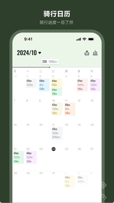 数据统计与分析:App会对骑行数据进行统计和分析,生成图表和报告,帮助用户了解自己的骑行习惯和运动表现。例如,它可以显示用户的总骑行距离、平均速度、最高速度、骑行时间等数据。