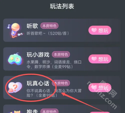 进入房间玩法界面,选择【玩真心话】点击想玩
