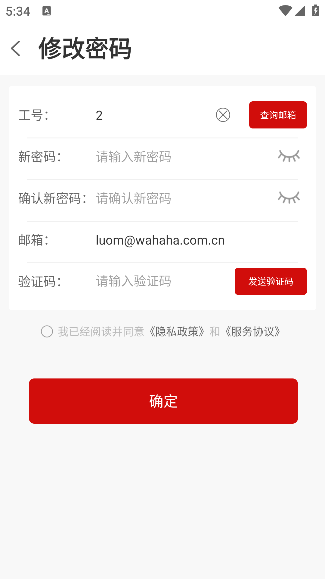 接着输入工号、新密码、邮箱地址等信息,点击确定按钮就能完成密码重置