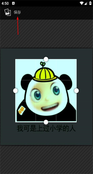 在图片裁剪界面,调整裁剪区域的尺寸与位置,点击左上角的保存按钮,即可完成该表情图的裁剪。