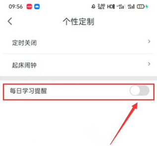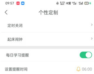 进入【个性定制】页面后,把【每日学习提醒】按钮切换到开启状态。