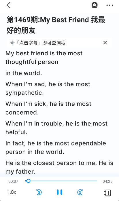 - 口语跟读:智能口语评分,逐句跟读逐词打分。