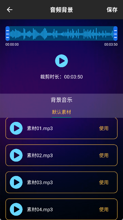 挑选一段音频,通过滑块选定要截取的部分,接着点击保存按钮。