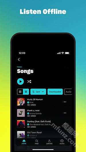 Amazon Music 还具备离线收听功能,用户能把喜爱的歌曲、播放列表以及专辑下载到设备里,这样即便在没有网络连接时也可以收听音乐。