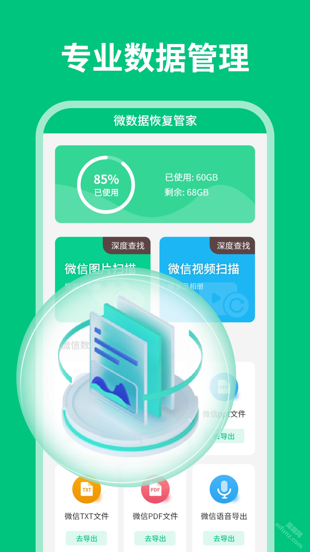 该软件具备强大的数据恢复能力,可支持多种数据格式的找回,除了能恢复文本类信息外,还能够对图片、语音、视频等多媒体内容进行恢复。