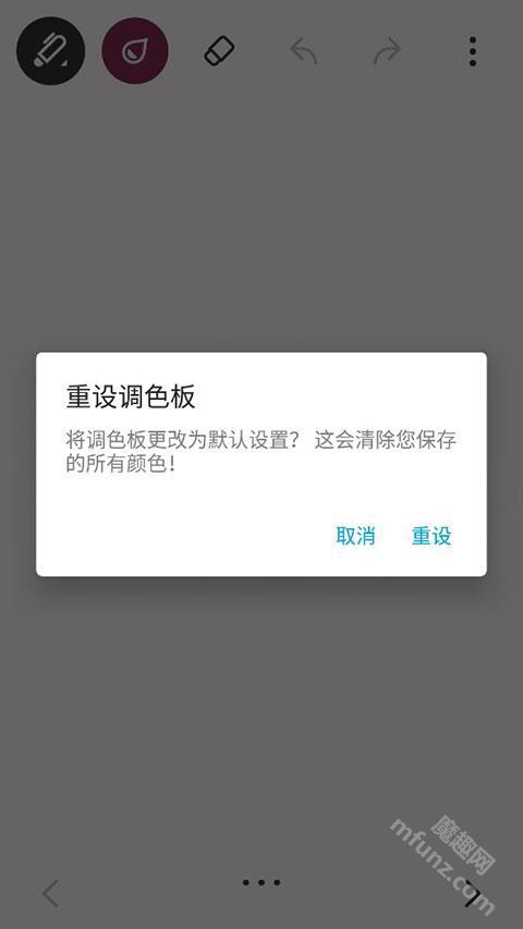 启动paper翻页相册软件,进入界面后,正上方有三个基础功能选项:画笔、调色与橡皮擦。