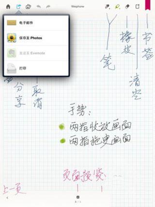 按住画纸就能弹出笔刷选择界面,免费版本提供三种笔刷和六种颜色,其中马克笔具备不同的粗细规格与色彩选项。笔记创作完成后,既可以进行打印操作,也能选择储存;点击右上角的标签功能,还能为内容设置重点标记,便于后续快速查找。